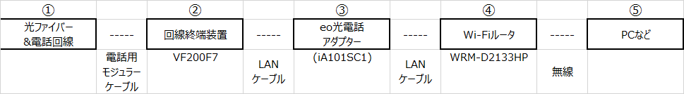 ③IP電話とインターネットを使うため、eo光電話アダプターにつなげてます。VDSLモデムのLANポートがひとつしかなく、光電話アダプターのLANポートを使って、インターネットを使ってます。
