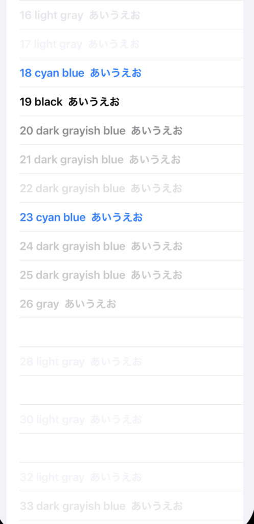 Text("\(index) \(uiColor.accessibilityName) あいうえお")